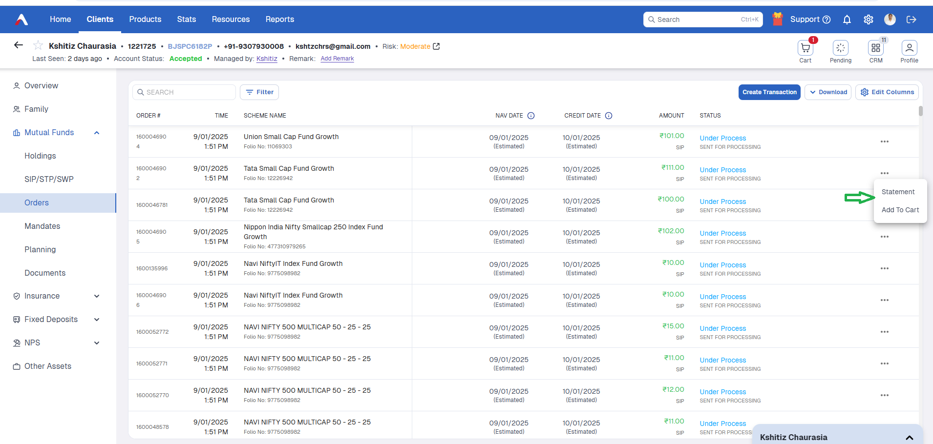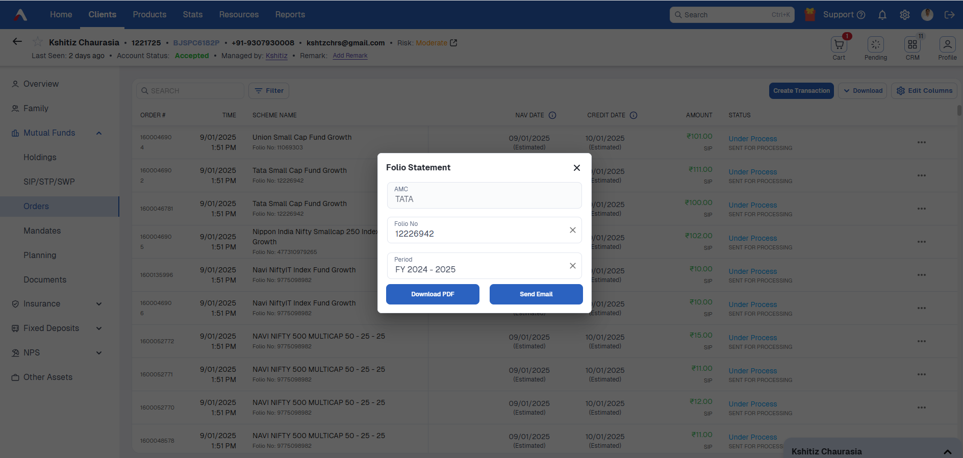Using this feature, you can download the folio account statement which is generated directly by the mutual fund company.