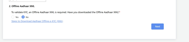 Step 2: Select the option no under the Offline Aadhaar XML and click on the link below.