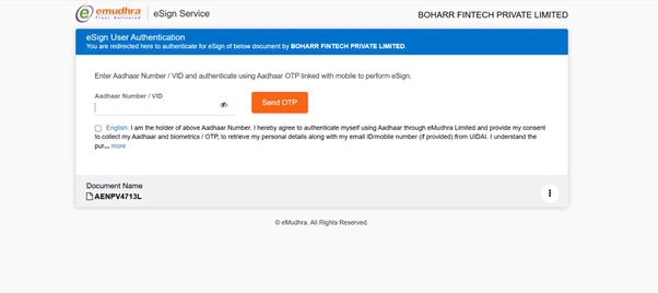 Step 7: Enter the Aadhaar number and E-sign the documents with OTP Verification.