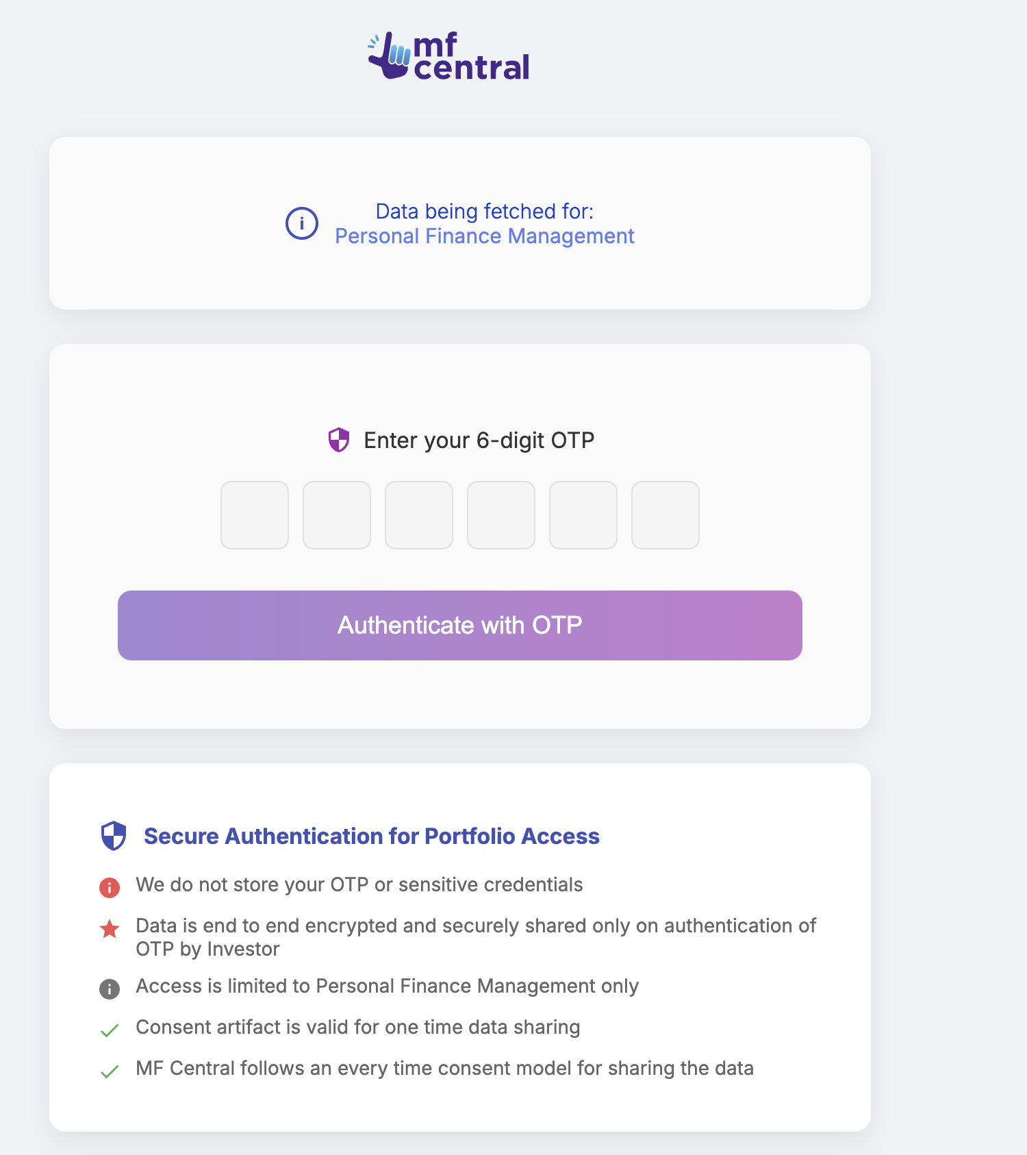 The page will be automatically redirected to the MF Central page for OTP verification.